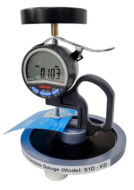 This is a precision instrument to accurately measure the thickness of flexible and semi-rigid substrates like tissue, paper, board, corrugated board, plastic films, laminates, foils, etc.